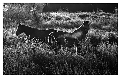 . Prior to that I photographed these two horses, the sun was very low and they seemed to be warming up before they started their day.