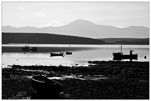 Well the forecasters got it all wrong for Westport. With heavy snow and or rain forecast I was actually looking forward to a morning in bed. I woke to clear skies. It took a while to clear the ice from the car before setting off gingerly for Rossbeg, just outside Westport. I am posting two pictures taken within seconds of each other, and both given the same treatment in photoshop. The only difference is the use of a polarizing filter on the darker picture. There are two filters that I regularly use, they are, a graduated neutral density and a polarizer.