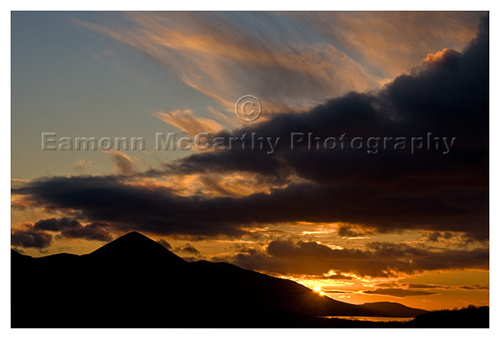 Slept in this morning and was in the Gallery for most of the day so did not get out until late. Just captured the sun as it disappeared behind Croagh Patrick. Photo taken at 16.28 shutter speed 200 and F16