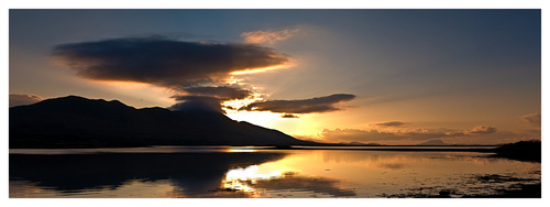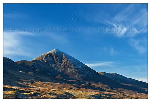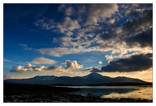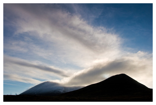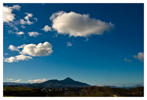 There was a great sky while I was out, I have included two pictures, one shows a big expanse of sky and in the other I have picked one cloud sidelit as it crosses the summit of Croagh Patrick.