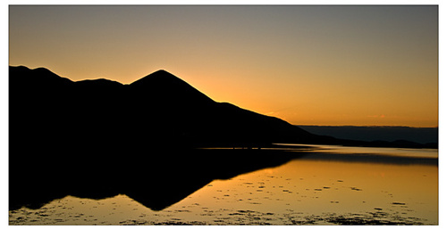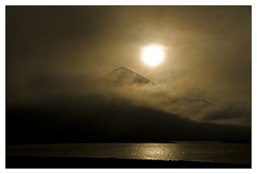 I say challenging because it was bitterly cold and foggy . we stopped first at Rossbeg were the sun was setting behind Croagh Patrick , which was for the most part hidden by fog and low cloud.
