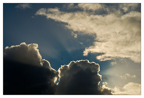 I just could not get up early this morning, still recovering from the drive and that defeat in Croke park yesterday. I then had a busy day in the gallery, I went out to the car to get something when the sky above looked great i took a couple of quick pictures and never saw the bird in this one.
