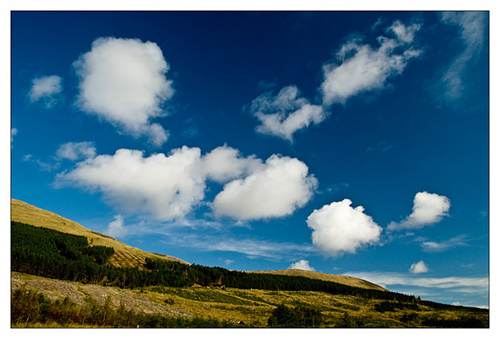 The sky looked amazing today it was so blue and the clouds so white. The clouds also appeared to be so high that to make a feature of the clouds in the photograph and include the land I had to go very wide angle.