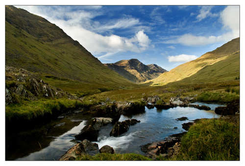 Well the forecasters got it right , it was a grey day. I woke this morning to low cloud and cold wind, even the most dedicated photographer is allowed to say ah well and go back to bed on a Sunday morning! So thats what I did. There was no sign of things improving all day, I had to drive to Kiltimagh to take my son Barry football training, I did not put the camera in the car and so when the sun did just peep through the cloud briefly, I had no camera! By the time we came home the sun was gone again and it got really cold. So I decided I would see what pictures I had that could be used for today. I came upon these two pictures with skies so different to today I thought I should use them. They were taken on a sunny day in December! Hard to believe ,but true. Taken on the road to Doolough the first picture required very carefull exposure and post processing.