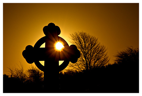 Once again another lovely day here in Mayo and once again I had little or no opportunity to go out with the camera. I was travelling between Claremorris and Kiltimagh around 8.10 am. I was travelling from East to West and was very aware of the sun rising behind me.I wondered where could I grab a picture for todays blog, when I remembered the graveyard at Kilcolman. Gravstones always face east so I knew I could get a Silhouette of a cross. But it was easier said then done. firstly I had to find a cross that lined up well with the low lying sun, then lining the sun up with the cross in the camera meant sitting on the ground which was heavy laden with frost.I also had to be very careful not to look directly at the sun through the lens as it would be very easy to damage my eyes. The sun was still very low, and I had no time to wait for it to rise further so I just had to take the picture even though the cross appears very short.