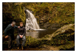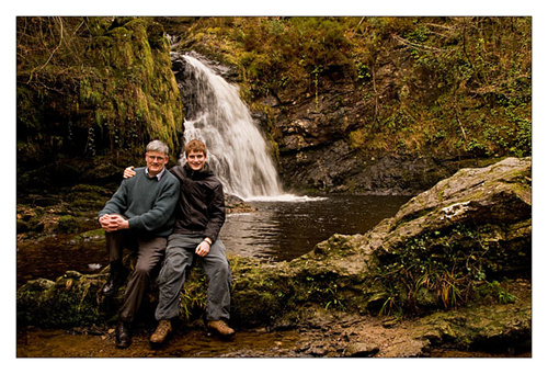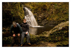 I was accompanied today by my son Barry who is home from university for a few days. Having photographed the falls in numerous ways I decided it would be nice to have a picture of the two of us. I set the camera on self timer pressed the button and ran (well I moved as fast as I could) and just as I sat down the camera fired.